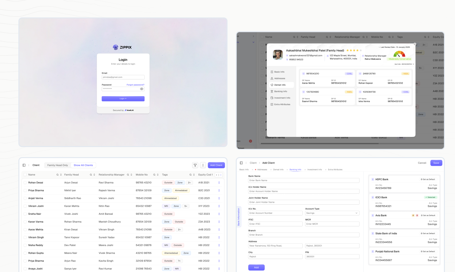 A finance SaaS panel for managing client information, tasks, and workflow, enabling teams to organize large-scale data efficiently.